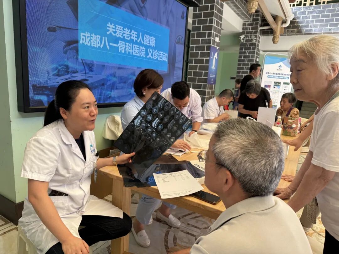 为庆祝中国共产党成立104周年,积极践行公立医院的社会责任,扛起“我为群众办实事”的初心使命,近日,成都八一骨科医院临床第五党支部组织义诊团队,带着院内制剂和健康知识手册,走进了熊猫颐园养老院,用实际行动将党建与业务相融合,传递健康与关爱,弘扬尊老爱老的传统美德。老人们脸上洋溢着期待与感激的笑容,对医护人员的到来表示热烈欢迎。 首先,宋思思医生进行了《“脚踏实地”走稳每一步,中老年人日常康复运动小课堂》的专业授课,为老人们讲解如何预防跌倒、如何进行颈椎腰椎康复训练、日常保护等系列科普知识,并生动演示关节操及健康睡姿等生活中容易忽略的小问题,老人们听的津津有味,一同动起来认真学习,这种实用接地气地科普得到了一致好评。 在随后的义诊过程中,医生耐心询问老人们的身体状况并阅读分析老人们的体检报告、x光片,细致地进行体格检查,答疑骨病相关问题,并针对患病老人的常用药物进行指导,避免用药不当或药物相互作用。医护人员与老年人交流,缓解他们的孤独感,提供心理支持,得到老人们一致的好评。 此次活动不仅让老人们享受到了专业的医疗服务,满足了他们多样化健康养老服务需求,通过此次义诊志愿服务活动,为行动不便的老年人提供上门医疗服务,解决就医难的问题,通过早期筛查和健康指导,帮助老年人预防疾病及控制病情发展,传递社会对老年群体的关心关爱,增强他们的幸福感和归属感。健康义诊活动不仅体现了医护人员对老年人的关爱与尊重,也弘扬了中华民族尊老、敬老、爱老的传统美德。未来,医院各支部将按照院党委统一部署,认真践履“全心全意为人民服务”的宗旨,持续让更多的医护人员加入到关爱老年人的义诊行列中来,为老年人的健康保驾护航。