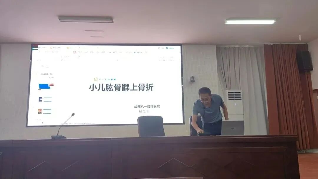 签约即行动,惠民暖人心。当日,成都八一骨科医院脊柱外科主任杨金川教授随即开展义诊,为等候的患者提供问诊、查体、阅片等服务,其专业诊疗赢得一致好评。义诊间隙,杨金川深入病房开展教学查房,结合病例详解诊断思路与治疗要点,将临床经验 “手把手” 传授给基层医务人员,还以《小儿肱骨髁上骨折》为题开展学术讲座,围绕该病症的损伤机制、分型、诊疗策略及并发症处理等内容,结合案例与前沿进展进行系统讲解,有效提升了九寨沟县中藏医院医务人员对儿童常见骨折的诊疗能力。