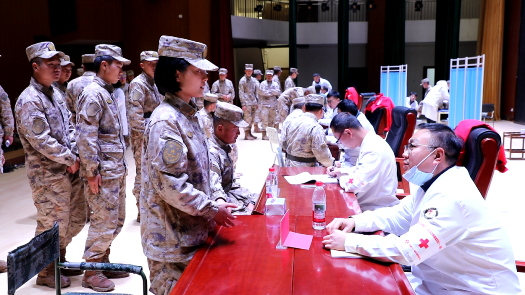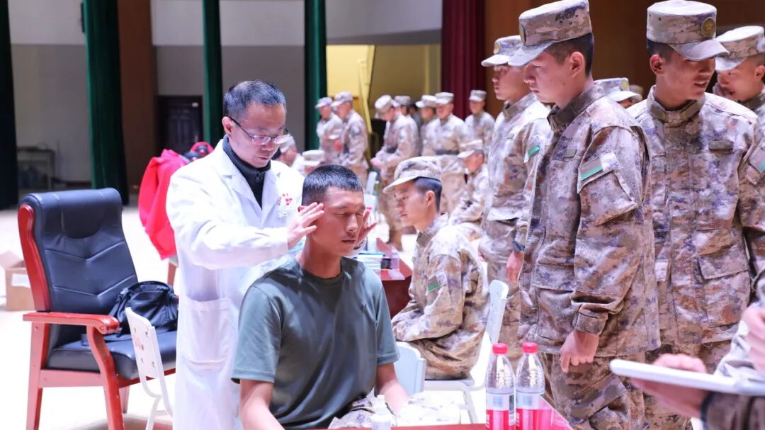 下午三点,车队驶入营区。在部队官兵的高效协助下,诊疗区很快在礼堂内搭建完成。令人动容的是,台下早已是候诊的官兵,他们专注的目光中,满含着对健康关怀的期待。