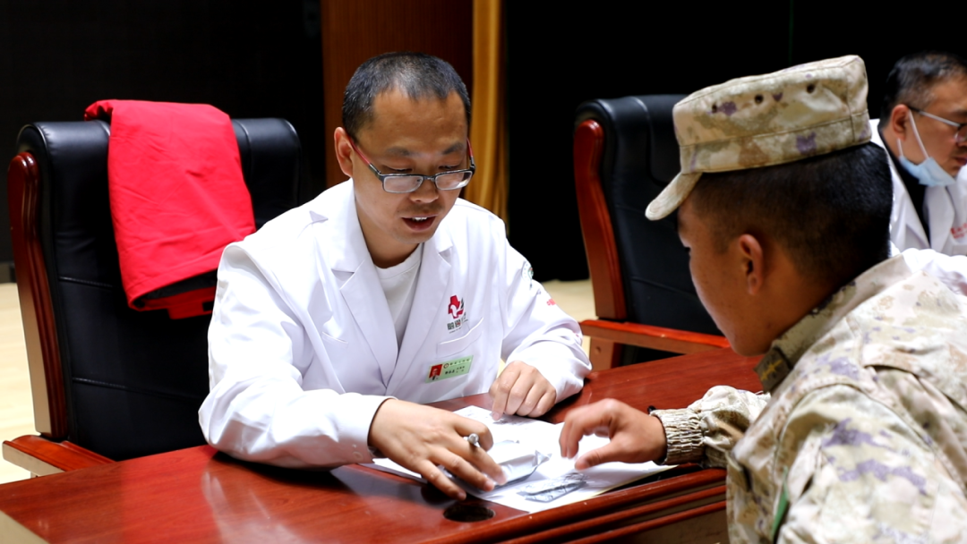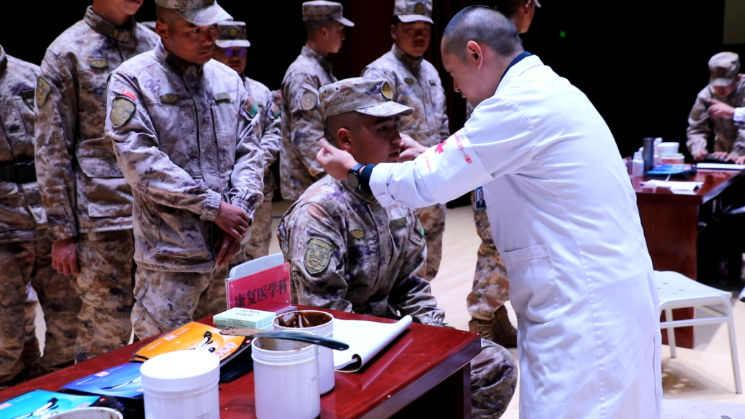 诊疗开始,每位专家桌前都排起了长龙。颈肩劳损、训练伤、高原皮肤病、口腔问题……这些都是高原官兵最常见的健康困扰。医疗队专家细致问诊、认真查体,为每位官兵制定个性化治疗方案。