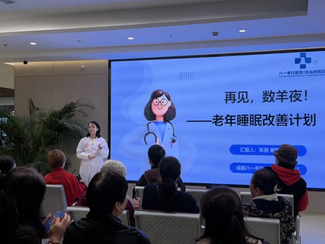 重阳节前夕,在成都八一骨科医院天仙桥院区诊疗大厅,睡眠医学中心主任朱丽为锦江区老年大学的叔叔阿姨们带来了一场深入浅出的睡眠知识科普讲座,结合生活实例与科学理论,生动讲解了睡眠的四个阶段,并细致剖析了困扰老年人的几大睡眠问题:入睡困难、夜间易醒、清晨早醒与日间倦怠。针对这些问题,专家不仅提供了专业的医学诊疗思路,更从心态调节、规律作息、饮食调整及睡眠环境优化等多个维度,送上了一份实用贴心的“安眠指南”,帮助大家从日常生活中寻回优质睡眠。 讲座结束后,中医骨伤诊疗中心的专家们为老年朋友们准备了暖心义诊,用四川省非遗项目“何天佐传统中医药正骨疗法”的方药及手法,细致地为叔叔阿姨敷药及诊疗,针对他们关心的骨伤骨病问题耐心解答,让他们心里感受到家一般的温暖,每个人脸上洋溢着幸福的笑容。 下午,来自临床第四党支部、老年骨科、健康管理中心、睡眠医学中心的专家们来到了四川老年大学,在505教室开展了骨质疏松科普讲座,为老年朋友们带来了一场扎实的健康知识普及。医生从专业角度出发,系统拆解了骨质疏松的病症分类与成因,并结合影像检查及医学指标,提供了清晰的自我筛查依据。最后,讲座内容落脚于实际生活,从药物治疗到日常饮食,给出了一系列科学且实用的防治建议。整场讲座干货满满,为在场的叔叔阿姨们提供了一份科学、贴心的骨骼养护指南。 设于四川老年大学的八一骨科医院义诊点位在下课铃声响起后迎来了人流高峰,老年朋友们纷纷来到义诊摊位前,排起长队等候咨询。面对每一位前来咨询的长者,医生都耐心聆听、细致检查,精准辨析其病痛根源。在明确诊断后,医生团队随即现场展开治疗:银针精准刺入穴位以通经活络,推拿手法刚柔并济以松解筋肉,并依据不同症状为大家配发活血止痛的药贴,提供了极具针对性的个性化服务。治疗区内,几位老同志的手背、关节处扎着毫针,他们一边遵照医嘱缓缓活动手臂,一边交流着针灸的独特感受,现场气氛融洽而有序。 结束义诊后,我院党办、非遗办、事业发展部会同老年大学相关科室开展工作座谈会,围绕支部共建、非遗传承、体检优待、课程共建、护理照料、中医药文化融合等多个方面进行探讨,旨在携手为银发人群创造更有意义的生活品质,将科学、规范、专业的医学知识传递到每位老人心中。 节日的温暖在关怀中传递,健康的承诺在行动中彰显。成都八一骨科医院将把这份重阳节的祝福延续为每一天的责任,将健康中国战略融入到每场授课及义诊活动中,用实际行动做老百姓身边最值得信任、最坚实的健康后盾。