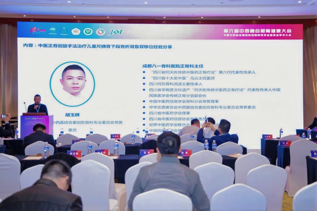 持续推进中医骨伤创新发展 在众多专题中,于10月31日下午举办的 “平行专题二:让年轻人喜欢中医药的使命与担当” 尤为引人注目。胡玉辉主任在该论坛上,以《中医正骨回旋手法治疗儿童尺桡骨下段骨折背靠背移位经验分享》为题作专题报告。胡主任系统介绍了我院的历史沿革与学科建设成果,重点阐释了“骨折脱位瞬间复位法”等中医骨伤诊疗的学术特色,并详细展示了我院核心技术——“何天佐传统中医药正骨疗法”在临床实践中的具体应用与显著成效。 此次大会以“中西融合·重塑生态”为核心理念,设置1个主会场及16场平行专题会议,汇聚陈可冀、张伯礼、邱贵兴等十余位院士及近千名中西医领域专家学者。会议涵盖手法医学、筋骨慢病防控、基础研究与转化、创新方法学构建等多个专业方向,为中西医在筋骨健康领域的深度融合与创新发展提供了高水平交流平台。我院代表的精彩发言,充分彰显了医院在中医骨伤学科方面的深厚积淀与临床实力,获得了与会专家的广泛关注与认可。