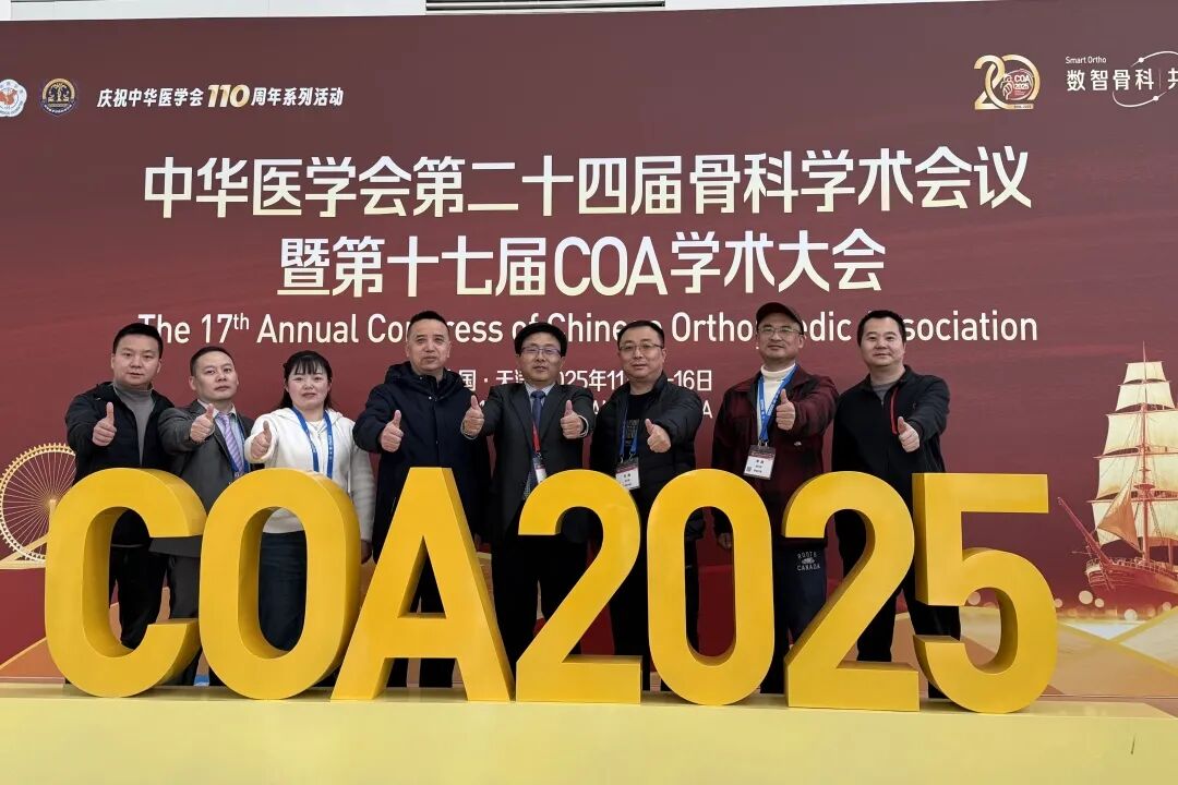擎画学科发展蓝图 本次大会内容聚焦行业核心发展趋势,智能化与数字骨科成为绝对主流,AI技术与手术机器人的创新应用成果备受瞩目,在术前规划、术中导航、术后预测等环节实现突破性进展,重塑骨科手术诊疗模式;3D打印技术已从传统解剖模型、手术导板,进阶至直接打印具备生物活性的金属植入物与定制化关节假体,标志着“一人一策”的个性化治疗时代加速落地。同时,精准化与微创化技术持续深耕,微创手术理念全面覆盖各亚专业,生物治疗与快速康复(ERAS)理念备受关注,为骨科疾病治疗提供多元化解决方案。 参会期间,我院团队全程深度参与各项学术活动,累计完成大会发言1人次、分会场主持及专题讨论点评3人次。其中,甘涛医生受邀就“人工真皮在骨科创面中的应用”进行发言,分享我院临床实践成果与创新经验。此外,集团下属各成员医院参会团队均带着学习任务与临床困惑研学,重点聚焦“智能化、精准化、微创化”核心领域,通过聆听权威报告、参与专题研讨、观摩壁报展示等多种形式,汲取前沿知识与实践经验。本次大会中集团医院共计投稿发言60余人次,充分彰显集团在骨科领域的学术积淀与技术实力。 此次天津COA学术之行,是一次兼具学术高度与实践价值的深度研学之旅。我院参会人员深刻感受到骨科领域迅猛的发展势头与行业变革带来的机遇挑战,纷纷表示将把所学新知识、新理念、新技术转化应用于临床诊疗实践,积极开展院内分享交流,与科室同仁携手精进技术,持续提升诊疗服务水平,以更优质的医疗服务惠及广大患者。 未来,我院将以此次参会为契机,持续推动学术与临床深度融合,鼓励更多医务工作者参与行业高水平研讨,在强化医院骨科学科优势、提升医疗服务水平的基础上,为护航区域群众骨骼健康、助力骨科事业创新发展增添坚实支撑!