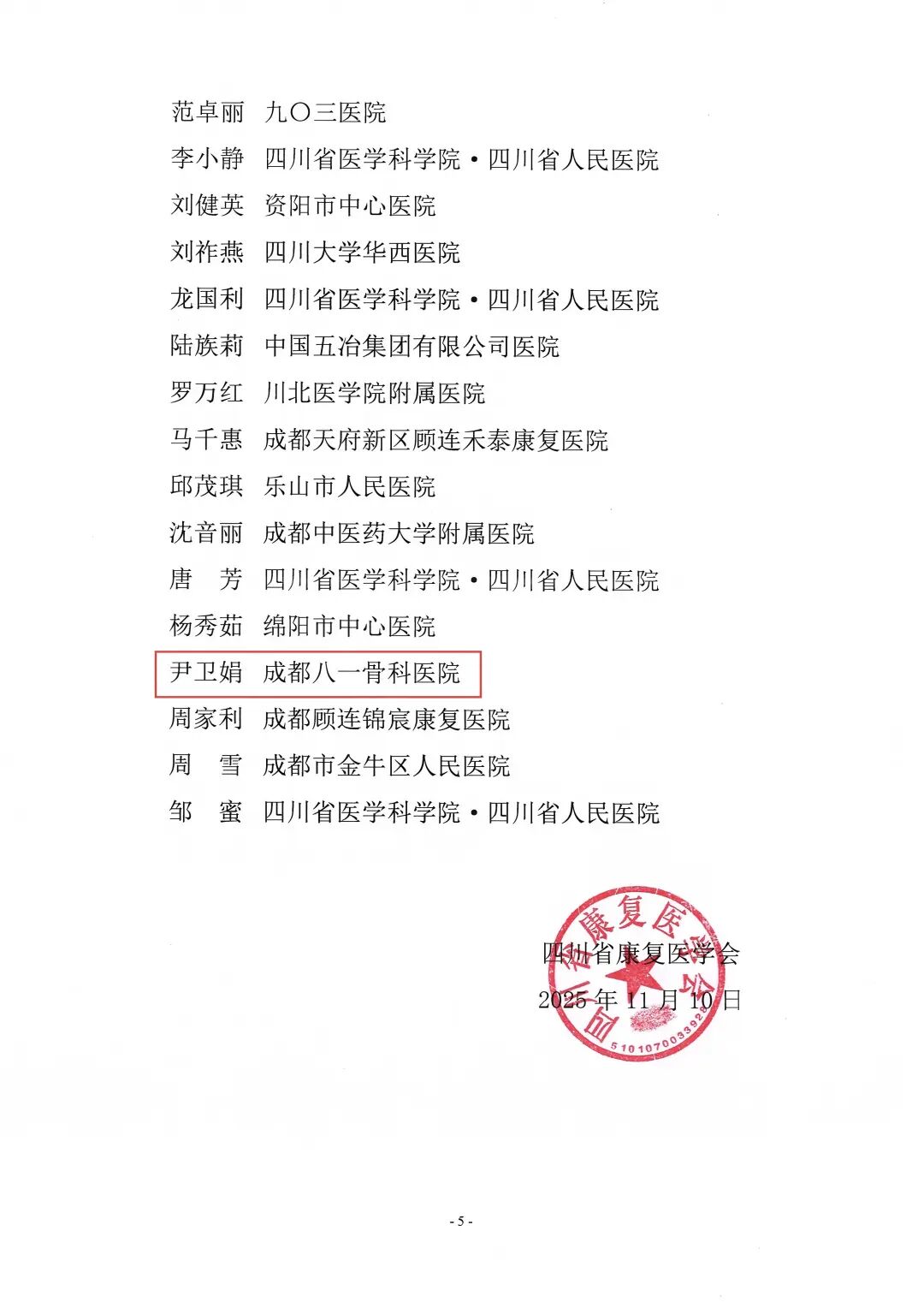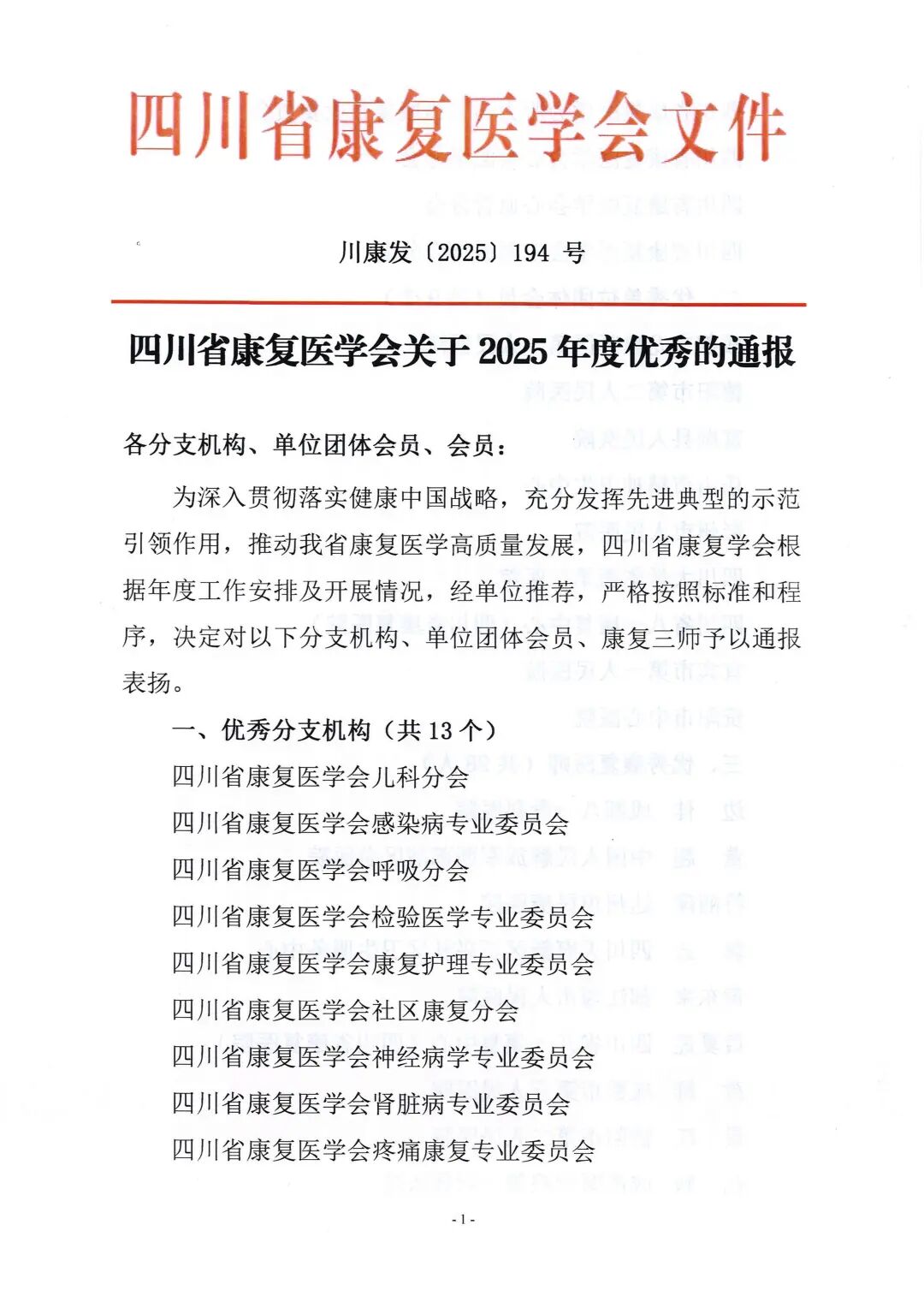 我院六名骨干荣获四川省康复医学会2025年度优秀表彰