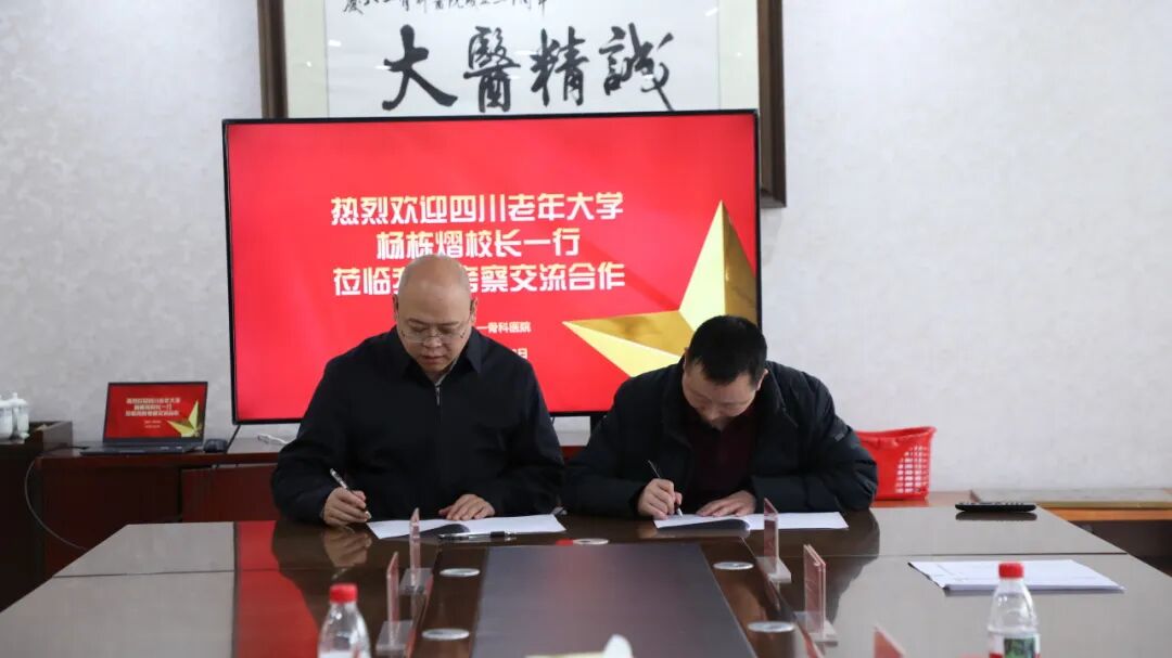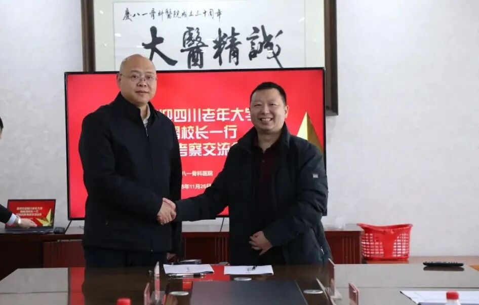11月26日,四川老年大学校长杨栋熠率党建部、教学部、宣传部等部门负责人莅临成都八一骨科医院,开展实地考察与调研,并举行合作座谈会。双方围绕“健康中国”战略,聚焦服务银龄群体、弘扬中医药文化,就课程共建、公益义诊、健康讲座等多个方面展开深入交流,共同探索“医养结合、文化养老”的创新路径,为提升老年人健康生活品质注入新活力。 在院党委书记贺前松的陪同下,杨栋熠校长一行参观了位于医院11楼的院史馆。贺前松详细介绍了医院从体工大队卫生所逐步成长为百姓信赖的三甲医院的奋斗历程,以及四川何氏骨科作为全国中医学术流派,为中医药传承与发展所作出的贡献。 副院长唐亚琪主持座谈会医院党办、老年病科、非遗办、事业发展部等部门参与交流。贺前松书记对四川老年大学一行表示热烈欢迎。他指出,当前老年人的健康需求已从传统疾病治疗扩展至康养、预防与健康误区纠正。成都八一骨科医院将充分发挥非遗传承优势,将专业、规范的中医知识与技术融入教学,以视频演示与现场实操相结合的方式,让老年学员“看得懂、学得会、用得上”,真正实现从“治已病”到“治未病”的转变,打造实用、精准的健康课程体系,服务老年群体。 杨栋熠校长高度赞同,他强调,合作应立足老年人实际需求,创新服务模式,例如开展骨与健康、慢病康复等主题公益讲座,组织义诊提供一对一咨询,设置中医理疗体验环节,并结合四季节气设计教学内容——如春季疏肝、夏季祛湿、秋季润燥、冬季温补,让健康管理融入日常生活,实现“因时施教、学以致用”。 在课程内容设计方面,老年病科(骨四科)主任严致远与教学部部长辛亚平深入交换意见。双方计划围绕骨质疏松、骨关节炎等常见老年骨病开设系列课程,既讲授骨骼保健原理,也传授康复实操技巧;从中医理论入门,结合穴位养生、八段锦等实践,引导老年人认识并信赖中医药;推广“药食同源”理念,研发实用药膳,让健康从日常饮食开始。 活动现场,成都八一骨科医院正式成为四川老年大学“定点医疗保障单位”,双方还签署了支部共建协议,为后续深入合作奠定坚实基础。 此次合作是双方深入落实"健康中国"战略与"十五五"时期实施健康优先发展战略的具体实践。贺前松书记与唐亚琪副院长表示,医院将依托融通医疗平台,整合中西医优质资源,不仅推进“中医药文化进校园”,更推动专业服务下沉老年群体。授课医生将提前调研,真实了解长者需求,以最高水平做好健康服务保障。双方对合作寄予厚望,认为此举将极大丰富学校课程内容,为学员带来实用、前沿的健康知识,是提升老年人生活品质的重要举措。 老吾老以及人之老,我们义不容辞。成都八一骨科医院与四川老年大学的此次携手,不仅是机构间的合作,更是弘扬敬老美德、推动中医药创新、助力“健康中国”的生动实践。未来,双方将持续深化沟通,稳步推进合作项目,共同守护蜀地长者的骨骼健康与晚年幸福。