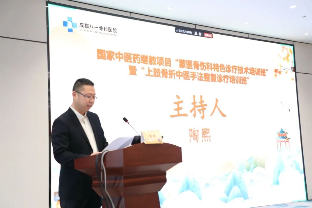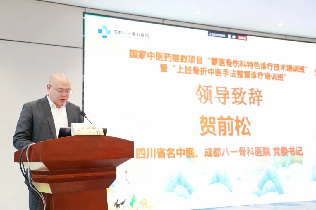 为深化中医药传承创新,推动蒙医骨伤特色技术交流,由成都八一骨科医院主办,四川省名中医贺前松传承工作室、四川天佐何氏骨科技术研究中心共同承办的国家级中医药继续教育项目“蒙医骨伤特色培训班”,于12月14日在成都顺利闭幕并取得丰硕成果。本次培训同步开设线上直播通道,吸引全国二十余个地区百余名骨科同仁参与,打造了一场内容充实、形式多样的中医骨科学术交流盛会。 成都八一骨科医院天仙桥院区 中医骨伤科主任 陶熙 长宁县中医院副院长 胡虞夔 开幕式由四川何氏骨科流派传承人、成都八一骨科医院天仙桥院区中医骨伤科主任陶熙主持。长宁县中医院副院长胡虞夔作开场发言,表达了自成为成都八一骨科医院医联体合作单位以来,长宁县中医院在学科建设、人才培养、品牌影响力提升等方面取得了显著成效;同时,对成都八一骨科医院依托深厚的四川何氏骨科流派底蕴与强劲的专科影响力,为行业同仁提供多次宝贵学习机会表示衷心感谢。 成都八一骨科医院党委书记 贺前松 四川省名中医、成都八一骨科医院党委书记贺前松致开幕辞,向与会同仁表示热烈欢迎,向长期关心支持医院建设及中医药事业发展的各位领导、专家致以衷心感谢。贺前松强调,本次培训班不仅是中医药创新传承的重要载体,更是新时代背景下,医院为深化医联体建设、推动中医药事业“传承精华、守正创新”开展的一次重要实践。希望全体学员潜心钻研、深入思考,既要掌握具体技法,更要领悟中医思维精髓;加强交流互鉴,依托本次平台围绕临床实际问题开展深度研讨;坚持知行合一、学以致用,将所学所悟转化为岗位实践,切实提升医疗服务能力,将中医药“仁、精、诚”文化精神融入日常诊疗工作。 本次培训班以“传承、融合、创新、发展”为核心,特邀四川何氏骨科流派的权威专家联袂授课,师资力量雄厚。各位专家深刻阐述了蒙医特色技术在理论渊源与手法用药上的互通之处,分享了其在临床中融会贯通的宝贵经验,为学员打开了跨流派、跨民族医学整合治疗的崭新视野。成都八一骨科医院的多位资深临床专家也倾囊相授,围绕复杂骨折、陈旧性损伤、颈肩腰腿痛等常见疑难病,展示了何氏骨科独特的诊断心法与治疗技法。 在手法实操环节中,授课专家现场演示了四川省非物质文化遗产“何天佐传统中医药正骨疗法”,学员在专家“手把手”指导下开展实操练习,现场学习氛围浓厚。 本次国家级继教项目的成功举办,有效提升了参训人员运用蒙医及四川何氏骨科特色技术服务患者的能力。展望未来,成都八一骨科医院将继续秉承“传承精华、守正创新”的精神,搭建更多、更优质的学术交流平台,将“何天佐传统中医药正骨疗法”利用好、发展好、传承好,为健康中国建设贡献中医骨伤力量。